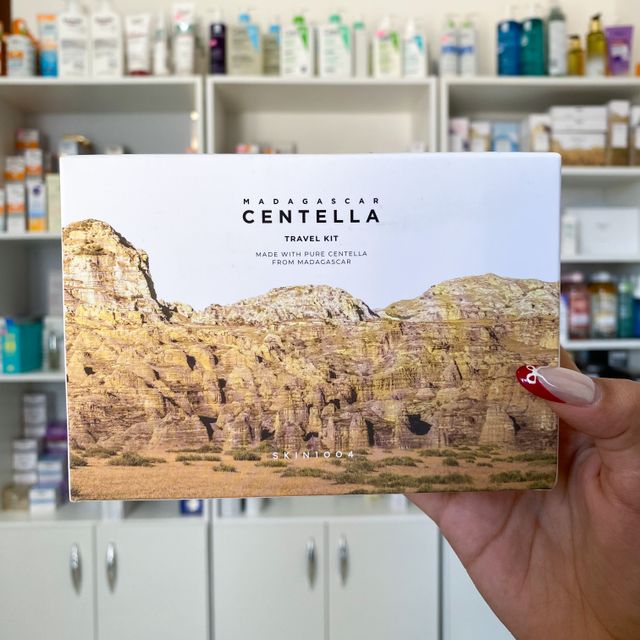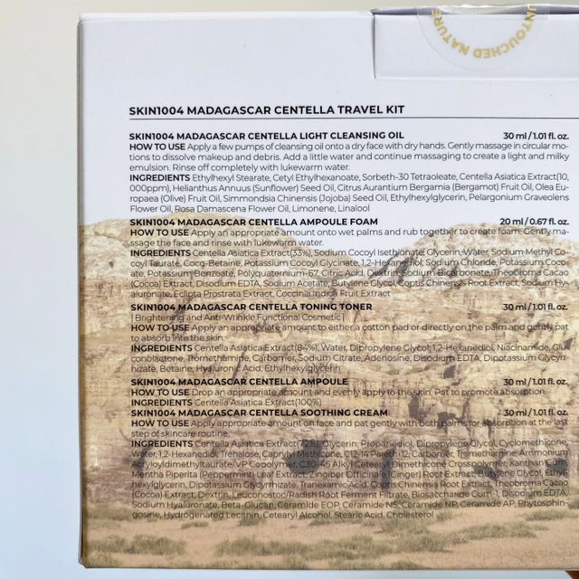 Con una infusión de extracto de centella asiática, los cinco productos de tamaño de viaje en este kit portátil calman y nutren la piel. Contiene: