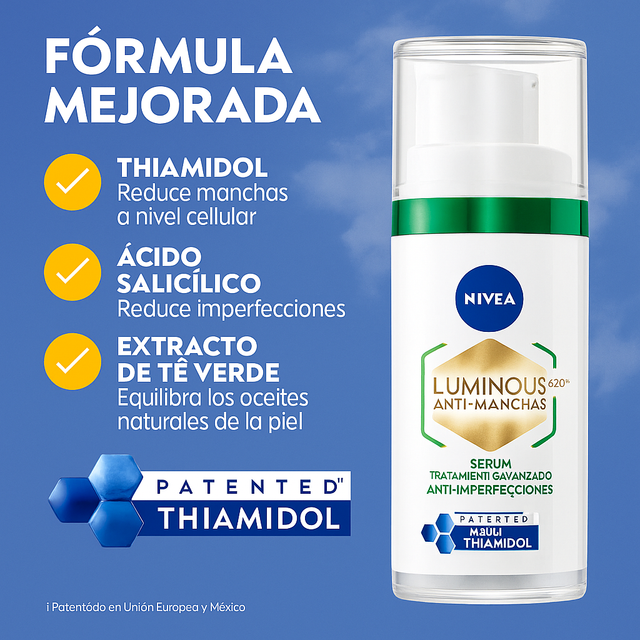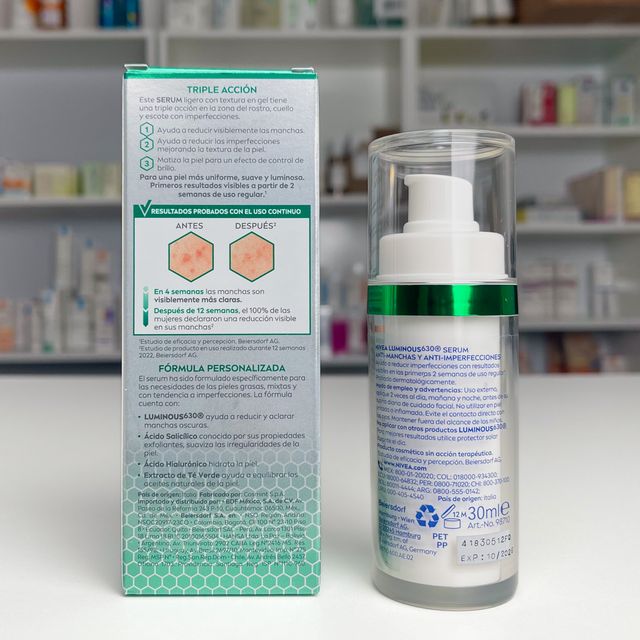Reduce manchas e imperfecciones 🌿 en tan solo 2 semanas. Controla el brillo, suaviza la piel y mejora su textura gracias al ácido salicílico y al ingrediente Luminous630® 💧.