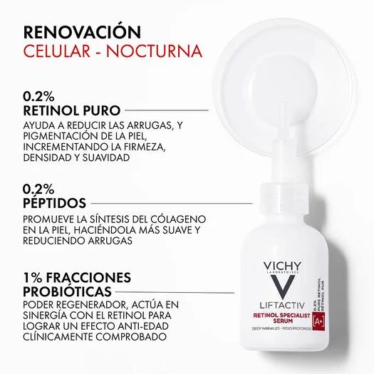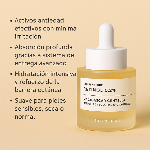 Una combinación de retinol y retinal que ayuda a mejorar la apariencia de la firmeza y la textura de la piel, aplicada mediante un sistema Boosting Shot para una piel de aspecto más saludable.. ✨🌿💧