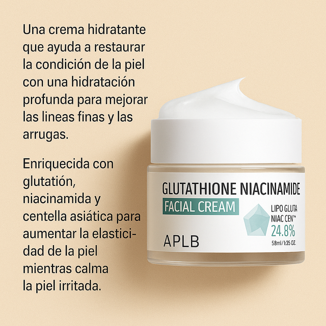 Ilumina, hidrata, mejora la elasticidad de tu piel. Su fórmula contiene Glutatión, Niacinamida y Centella Asiática que dejan tu piel sana y glowy