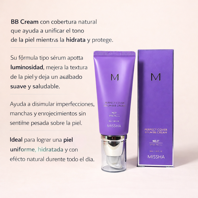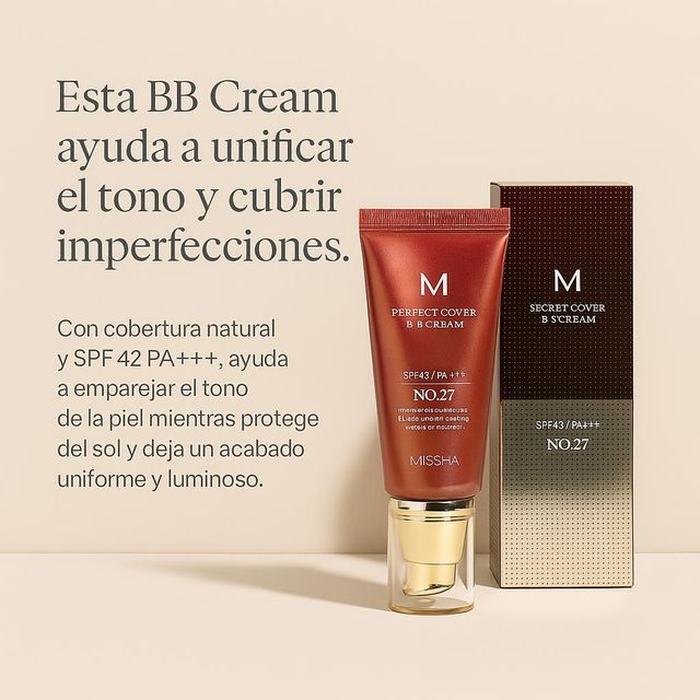 ✨ BB Cream Missha Perfect Cover 💄 Unifica el tono, cubre imperfecciones y rojeces, hidrata y protege del sol con SPF 42 PA+++. Acabado natural, piel luminosa y aspecto impecable todo el día 🤍✨