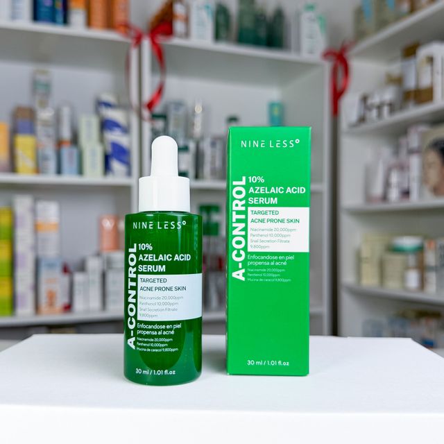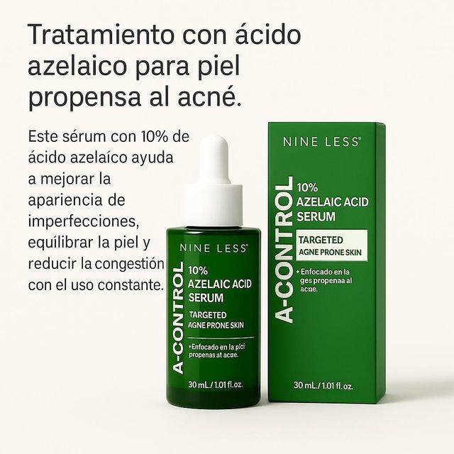 ✨ Sérum Nine Less Ácido Azelaico 10% 💚 Ayuda a reducir acné, rojeces y manchas, controla el sebo y unifica el tono. Ideal para piel con tendencia acneica, deja la piel más calmada y clara 🌿✨