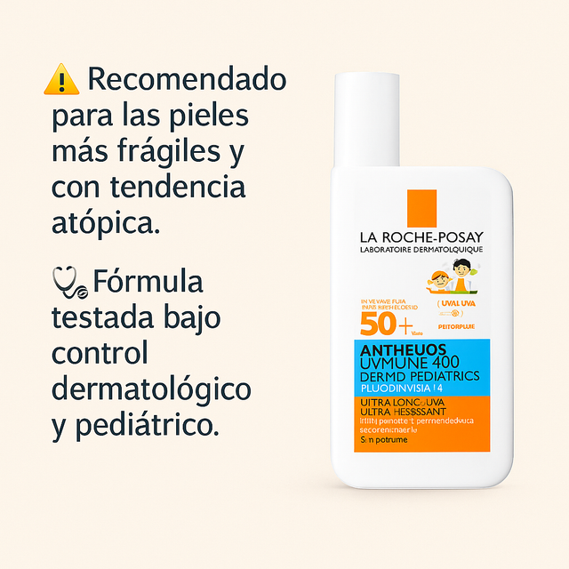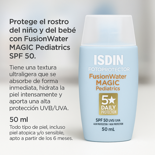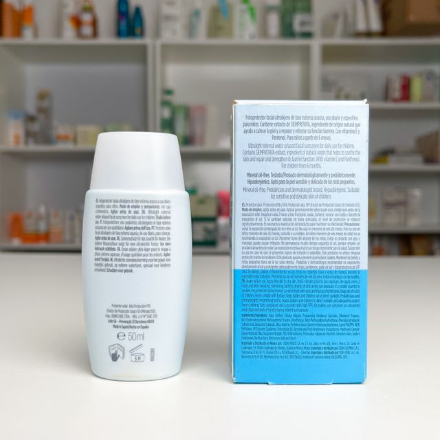 Protección solar facial para niños con textura ultraligera y resistente al agua 💧. Aporta hidratación, no irrita los ojos y es apto para piel sensible. Sin perfume.