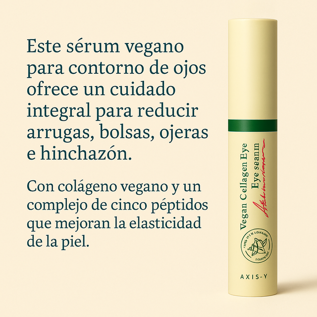 Contorno AXIS-Y con colágeno vegano + 5 péptidos: suaviza arrugas, bolsas y ojeras, mejora elasticidad y calma la zona para una mirada fresca y descansada. 🌿✨👀