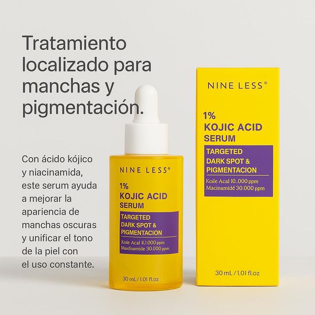 ✨ Sérum Nine Less Ácido Kójico 1% 💛 Ayuda a reducir manchas y pigmentación, unifica el tono, ilumina y mejora la textura de la piel. Ideal para piel opaca, deja el rostro más claro, suave y radiante