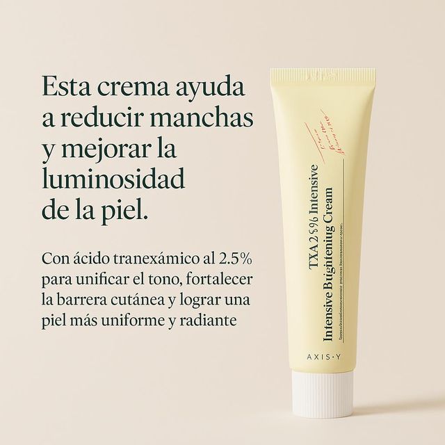 ✨ Crema AXIS-Y TXA 2.5% 🌼 Ayuda a aclarar manchas, unificar el tono y devolver la luminosidad ✨ Hidrata, mejora la textura y deja la piel más radiante, suave y uniforme 💛