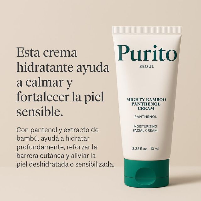 💚 Crema Purito Mighty Bamboo Panthenol 🌿 Hidrata intensamente, calma la piel sensible, fortalece la barrera cutánea y reduce la irritación. Ideal para piel deshidratada o dañada, deja la piel suave.