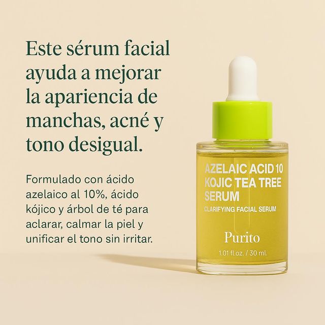 ✨ Sérum Purito con Ácido Azelaico 10%, Ácido Kójico y Tea Tree 🌿 Ayuda a reducir acné, manchas y rojeces, controla el sebo y unifica el tono, dejando la piel más clara, suave y equilibrada 💚