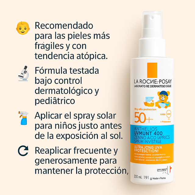 👶 Ideal para la piel sensible de los niños, resistente al agua, hipoalergénico y enriquecido con agua volcánica de Vichy