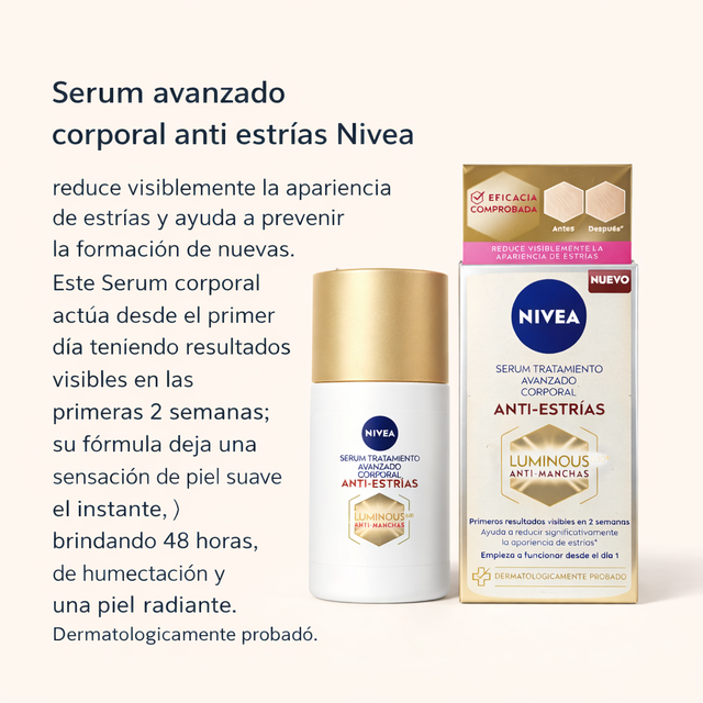 Reduce visiblemente la apariencia de estrías y ayuda a prevenir la formación de nuevas.