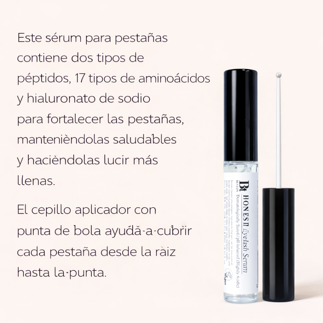 Sérum fortalecedor de pestañas ✨👁️ con péptidos, aminoácidos y ácido hialurónico 💧. Ayuda a que luzcan más fuertes, sanas y llenas 💕. Aplicador preciso que cubre desde la raíz hasta la punta 🌿💫.