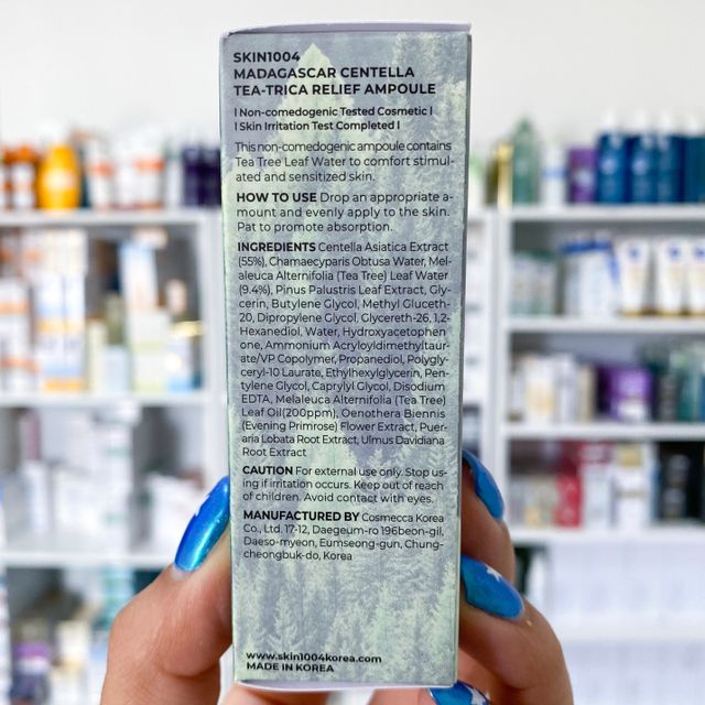 Su fórmula, altamente calmante se enfoca en aliviar inflamación e irritación acnéica, con un 80% de la exclusiva formulación de tea-trica compuesta por extractos árbol del té, ciprés, pino y centella