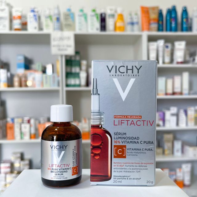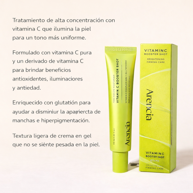Es un sérum concentrado formulado con Vitamina C Pura y Derivados de Vitamina C, una forma estable y potente de Vitamina C que ayuda a mejorar visiblemente la opacidad y a unificar el tono de la piel.