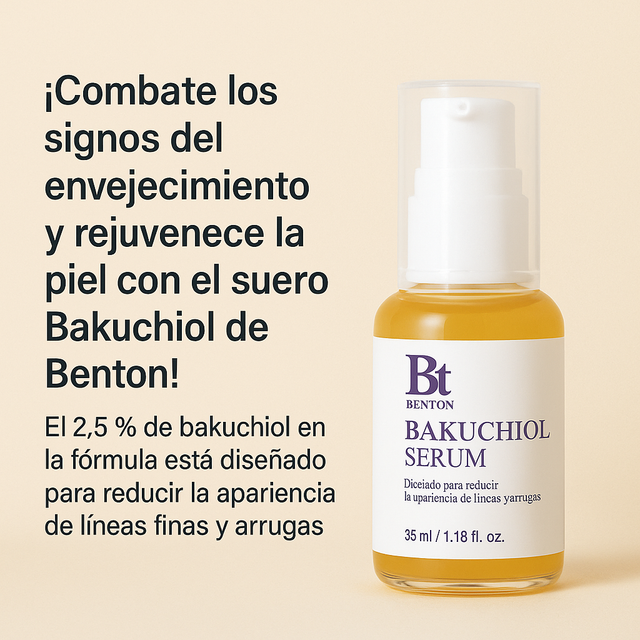 ✨ Suero Bakuchiol 2.5%: suaviza líneas y arrugas, mejora firmeza y elasticidad 💪, unifica e ilumina el tono 🌟 y calma la piel sensible 🌿. Textura ligera, sin irritar. Piel más joven y radiante 💖.