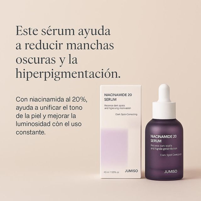 ✨ Sérum de Niacinamida 20% de Jumiso 💜 Ayuda a reducir manchas y hiperpigmentación, unifica el tono, controla el sebo y mejora la textura de la piel, dejándola más luminosa, suave y equilibrada 🌿